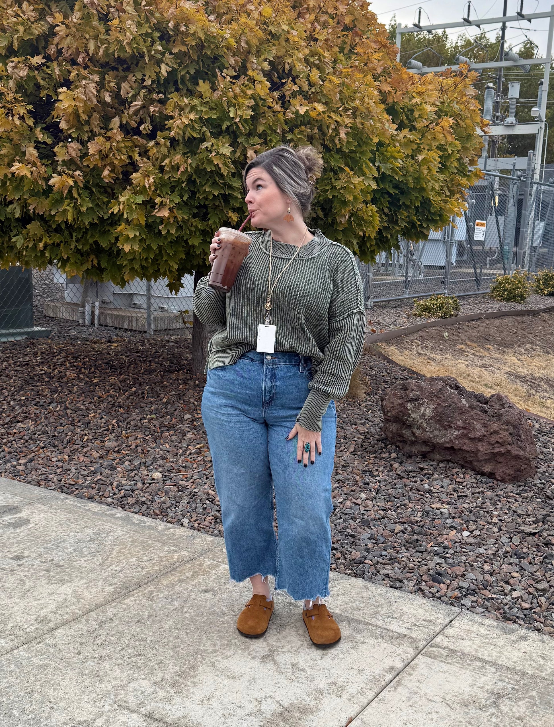 Mineral wash oversized sweater with side slits and slightly cropped.